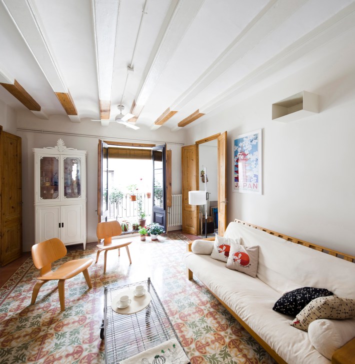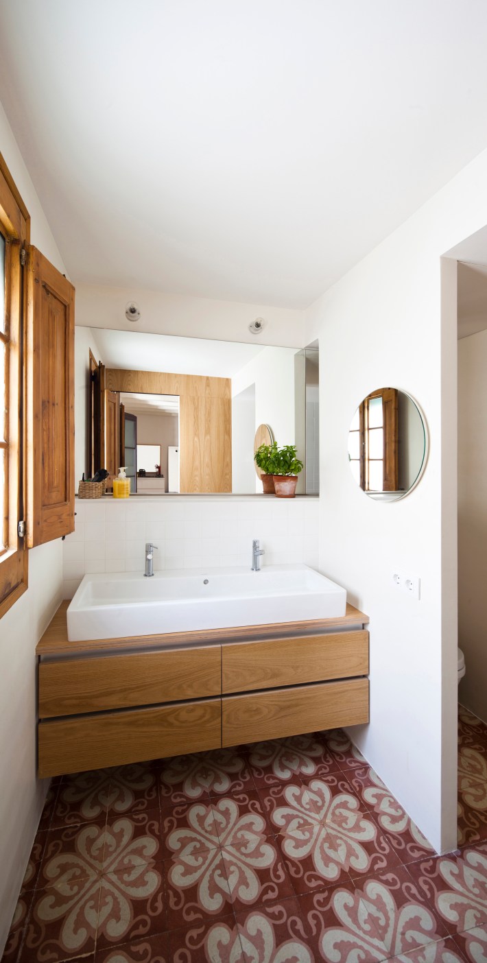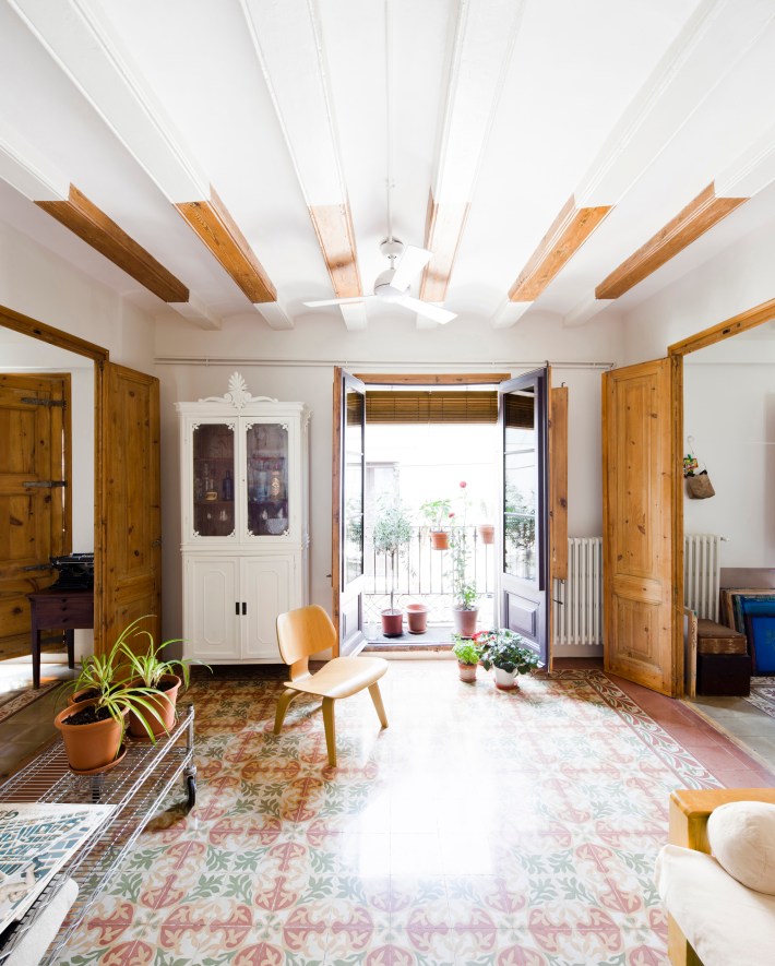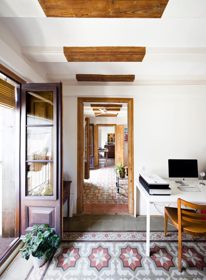 En el resto de la vivienda, en cambio, conservamos los suelos hidráulicos, así como las carpinterías de madera originales, que se encontraban en buen estado y consrvaban el carácter y la memoria del barrio donde se ubican.