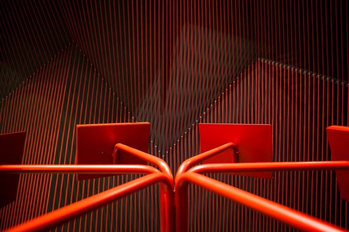 El Stand del 2016 se realizó con cuerda amarilla sobre fondo azul, y el del 2017 con cuerda roja sobre fondo verde. Estos colores complementarios añaden una potente capa de complejidad en su percepción que se suma a la que producen los distintos planos del perímetro. El resultado es un espacio potente en su simplicidad, pero que ofrece una gran variedad perceptiva a los usuarios.