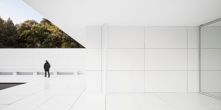 La instalación convierte esta paradoja en vivencia. Permite al visitante plantearse éstas y más reflexiones a través de su propia experiencia en un Pabellón que, por unos días, pierde su rastro material para, así, asumir todo su potencial representativo y relacional. Nos permite reflexionar sobre aspectos tan transversales como el valor de la imperfección, en un pabellón alterado que se presenta pulcro e inmaculado el primer día, pero que muestra todos los rastros del deseo después de días de visitas. Refuerza la interpretación del Pabellón como templo del alma alemana, ahora sí blanco, aunque todavía desprovisto de sus ocho columnas en la fachada de acceso. Lo podemos comparar con la imagen de aquella maqueta hecha de telas blancas que supuestamente Mies realizó para la familia Kröller-Müller. Y entre otras reflexiones, nos muestra el poder de las juntas, ahora perfectamente visibles al desaparecer las texturas y reflejos que las ocultaban y que nos recuerdan a una de las perspectivas o collages tan característicos de Mies por el que ahora podemos pasear.