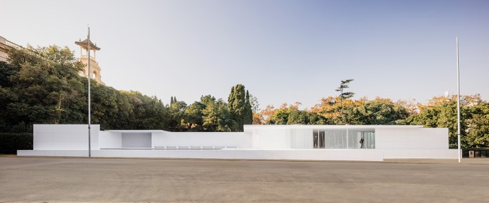 El Pabellón de Barcelona fue entronado como icono de la modernidad en la exposición “Modern Architecture” del Moma de Nueva York de 1932. En el catálogo de la exposición, varios edificios de arquitectos como el propio Mies van der Rohe, Le Corbusier, Neutra, Wright, Oud o Gropius, entre otros, son presentados a través de una selección de fotografías y escritos críticos en los que Philip Johnson y Henry Russell Hitchcock apuntan los criterios homogeneizadores para poder aunar todas las obras bajo un mismo foco. Entre tales criterios, la superficie blanca, como emblema de una nueva arquitectura, aparece como uno de los más insistentes.