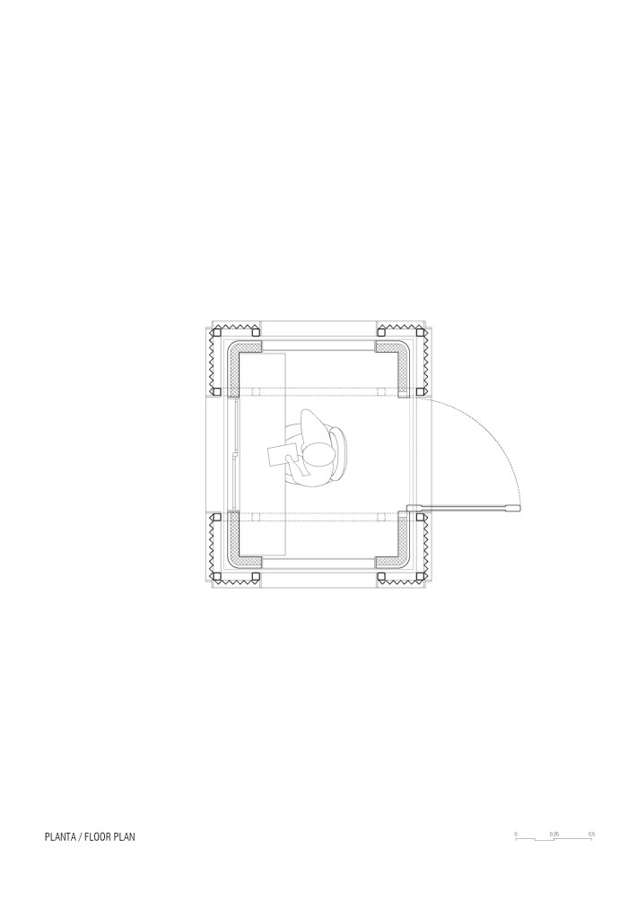 Proyectar un edificio de tan sólo 1 m2 invita a plantearnos dónde está el límite entre vestir y construir. A menor superficie, más similitudes parecen existir entre uno y otro. El proyecto trabaja en ese punto en que el vestido se convierte en una estructura, manteniendo los rasgos e incluso las características propias de las piezas de vestir, trabajando en una zona intermedia entre la confección y la arquitectura.