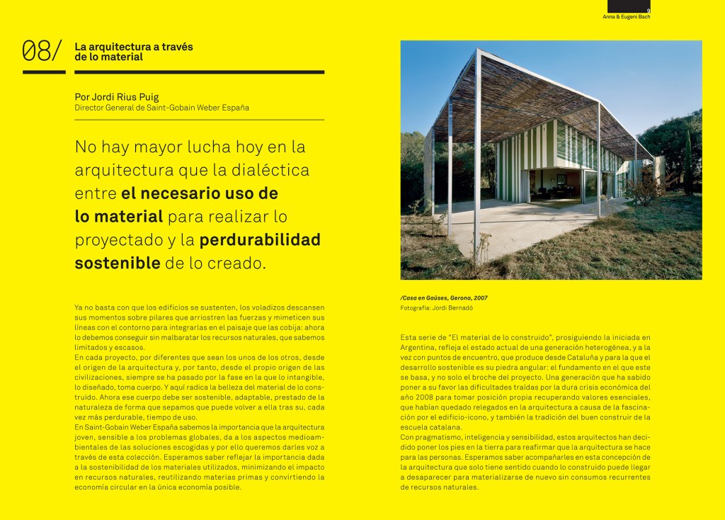 La colección “El material de lo construido” destaca el trabajo de una serie de oficinas de arquitectura catalanas en cuyas obras es palpable la coherencia entre concepto y materialización y para las que la sostenibilidad es piedra angular.