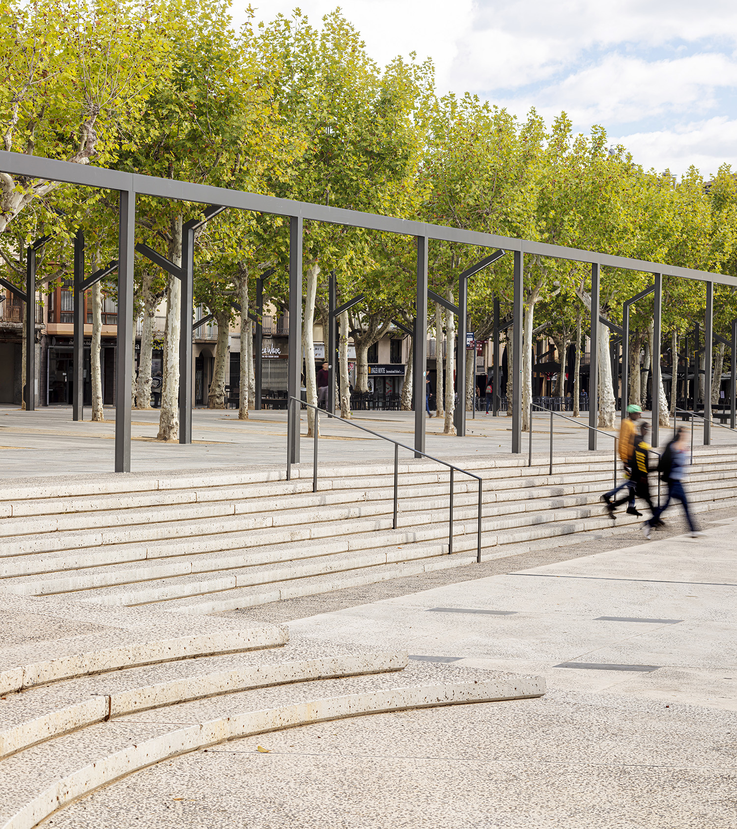 Este nuevo espacio central entre el Firal y el Firalet permite una multiplicidad de usos gracias a su carácter abierto, resuelve el desnivel topográfico eliminando barreras arquitectóncias y aloja espacios como los juegos infantiles, el escenario o la plaza abierta para eventos de todo tipo.