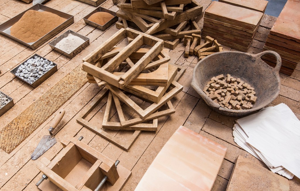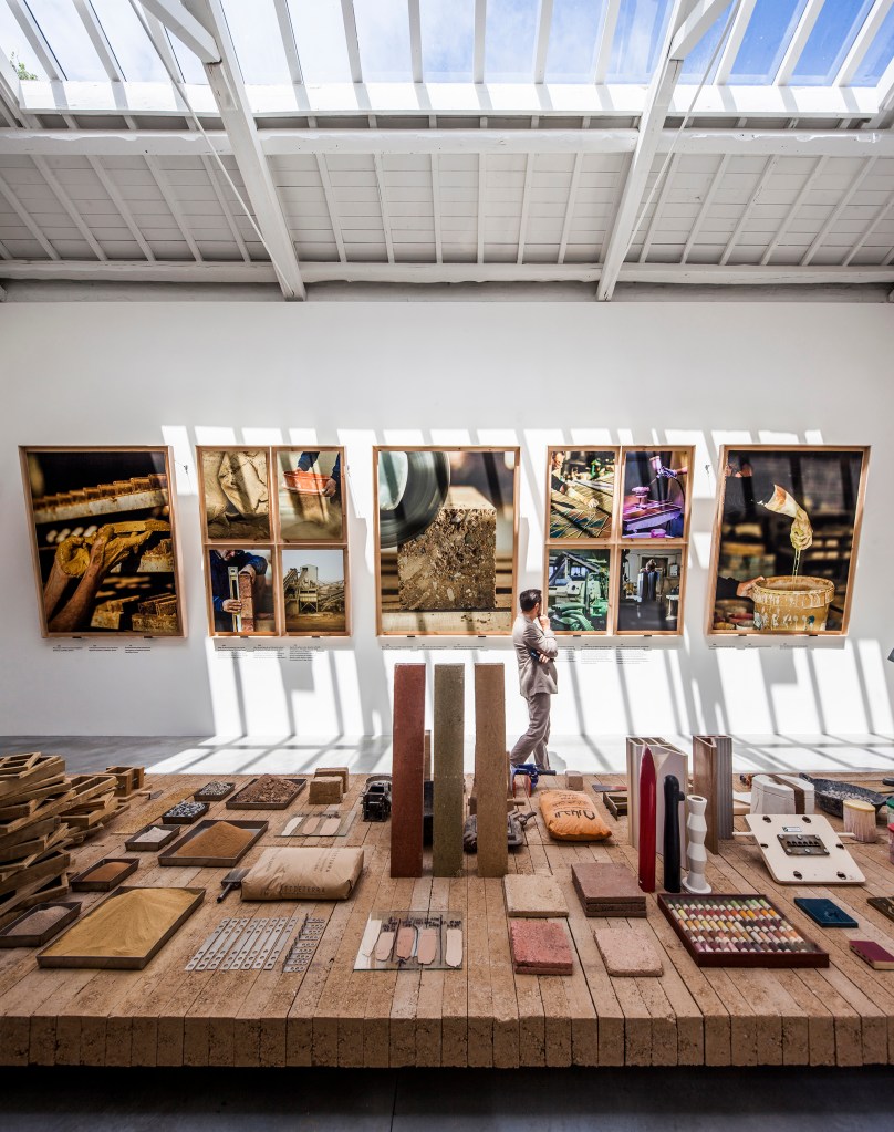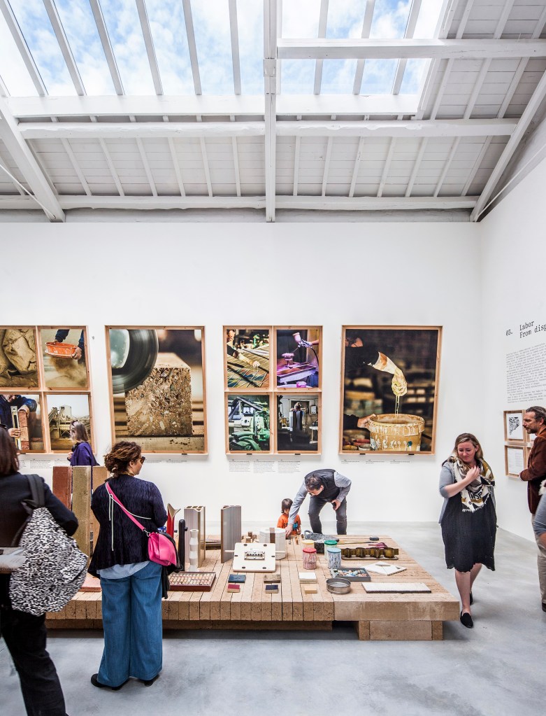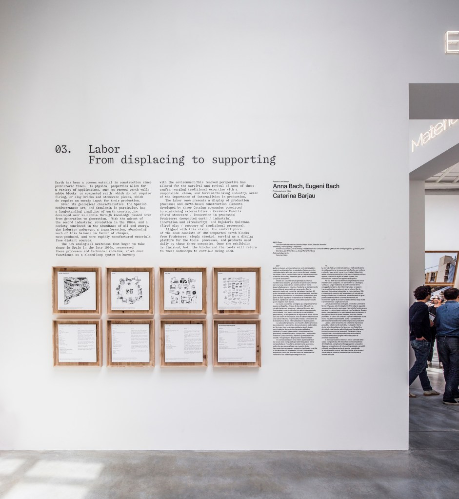 The Labor room presents a display of production processes and earth-based construction elements developed by three Catalan companies committed to minimising externalities – Cerámica Cumella (fired stoneware / innovation in processes) Fetdeterra (compacted earth / industrial innovation and circularity) and Rajoleria Quintana (fired clay / recovery of traditional processes).