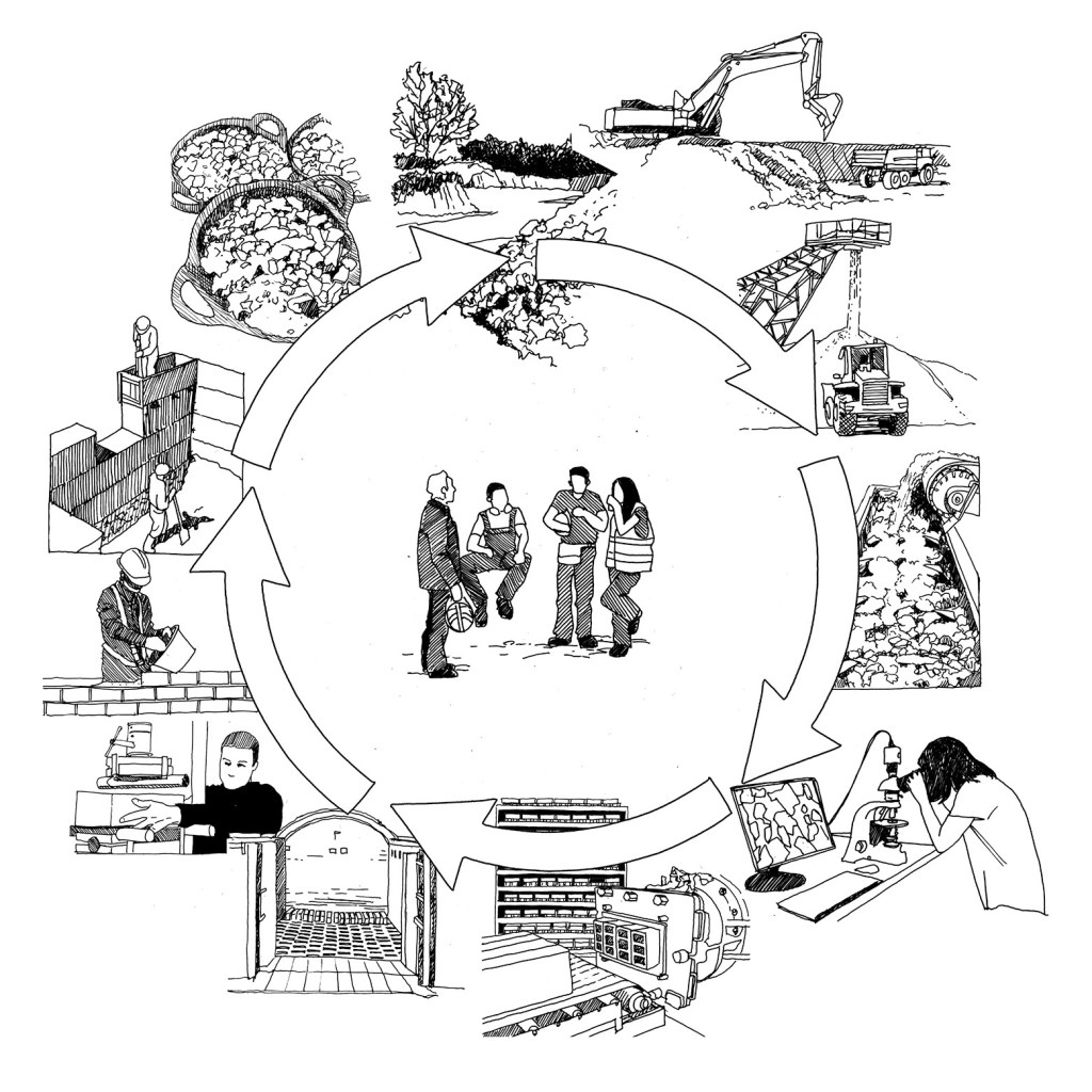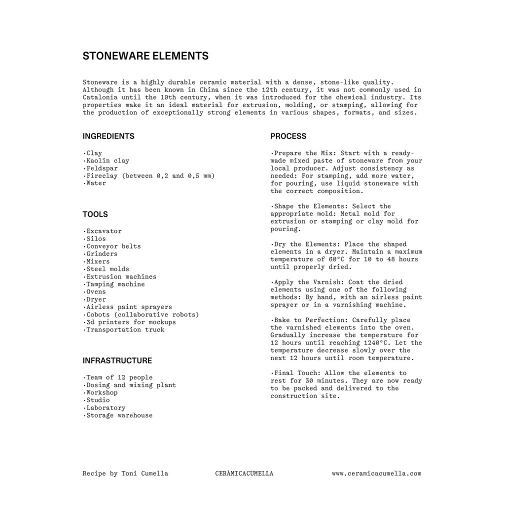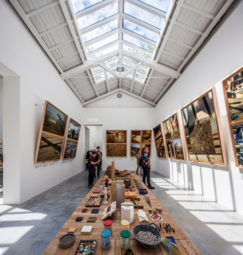 The Labor room presents a display of production processes and earth-based construction elements developed by three Catalan companies committed to minimising externalities – Cerámica Cumella (fired stoneware / innovation in processes) Fetdeterra (compacted earth / industrial innovation and circularity) and Rajoleria Quintana (fired clay / recovery of traditional processes).