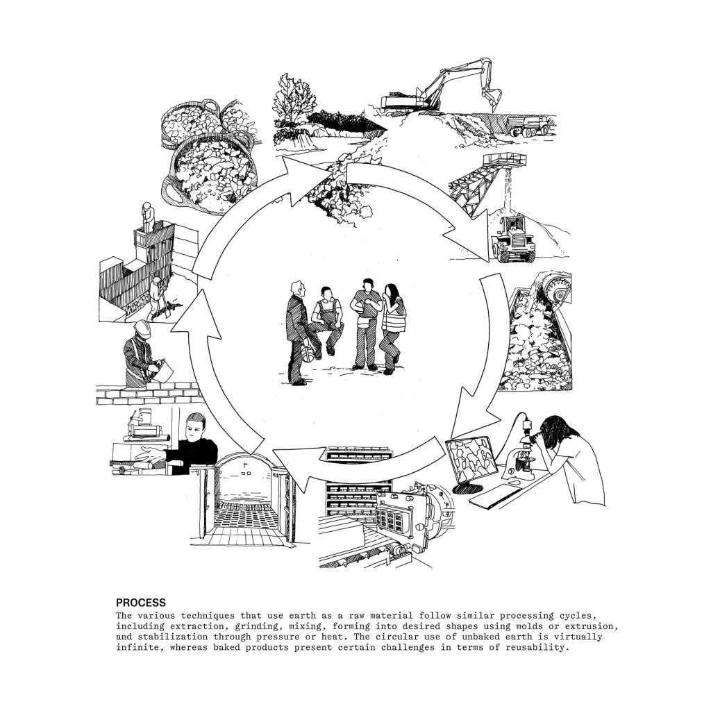 La tierra ha sido un material común en la construcción desde la prehistoria. Sus cualidades físicas permiten múltiples elaboraciones; muros de tapia, bloques de adobe o tierra compactada que no requieren cocción o ladrillos de arcilla y piezas de gres que necesitan de un aporte energético.